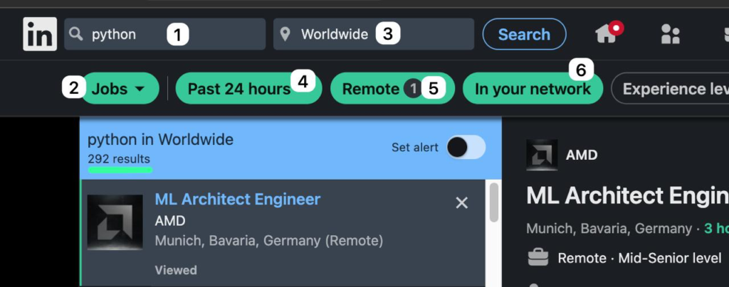 - Location: “Worldwide” can expand your search for clients or remote roles.
