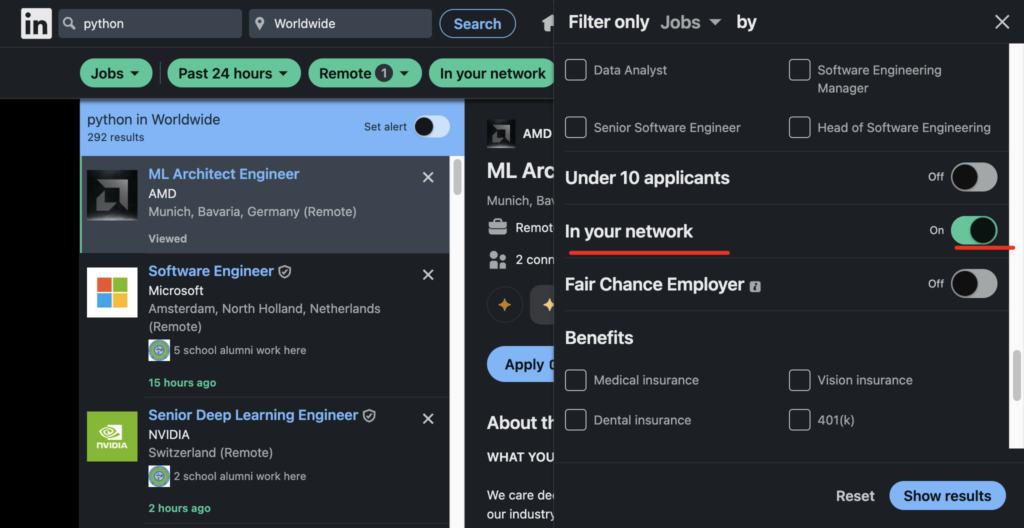 - Connections: Focus on “In Your Network” to connect with those who are already somewhat familiar with you